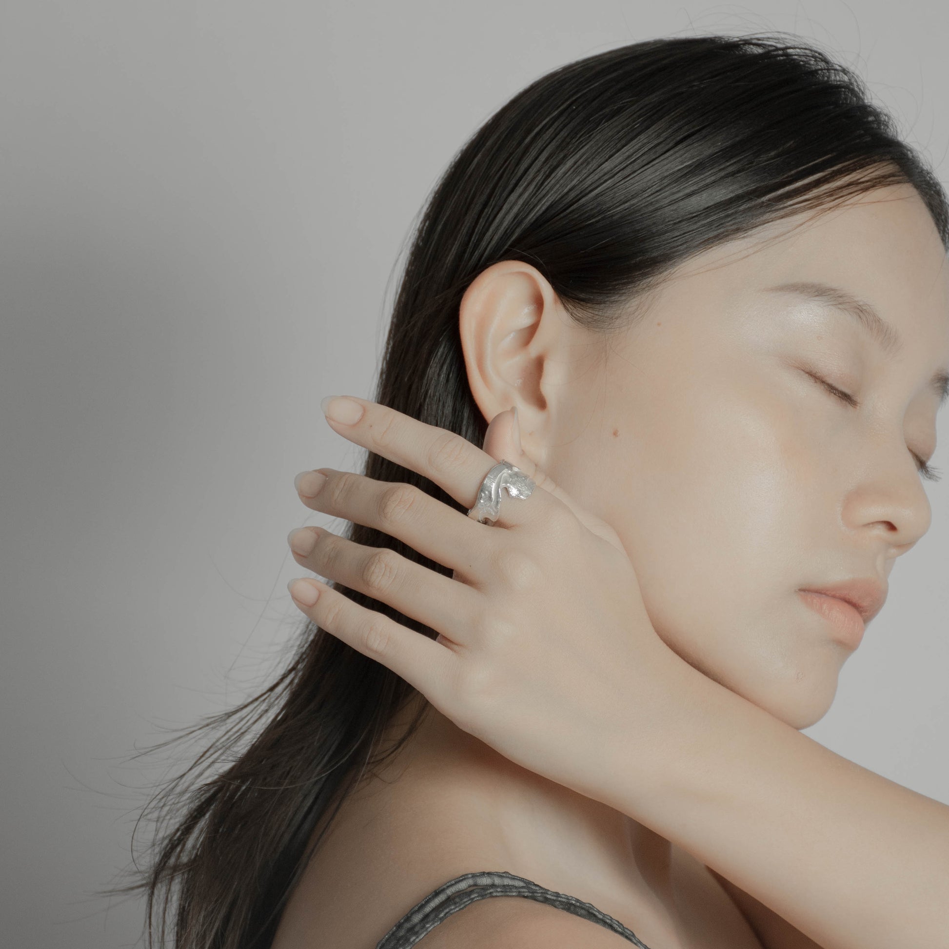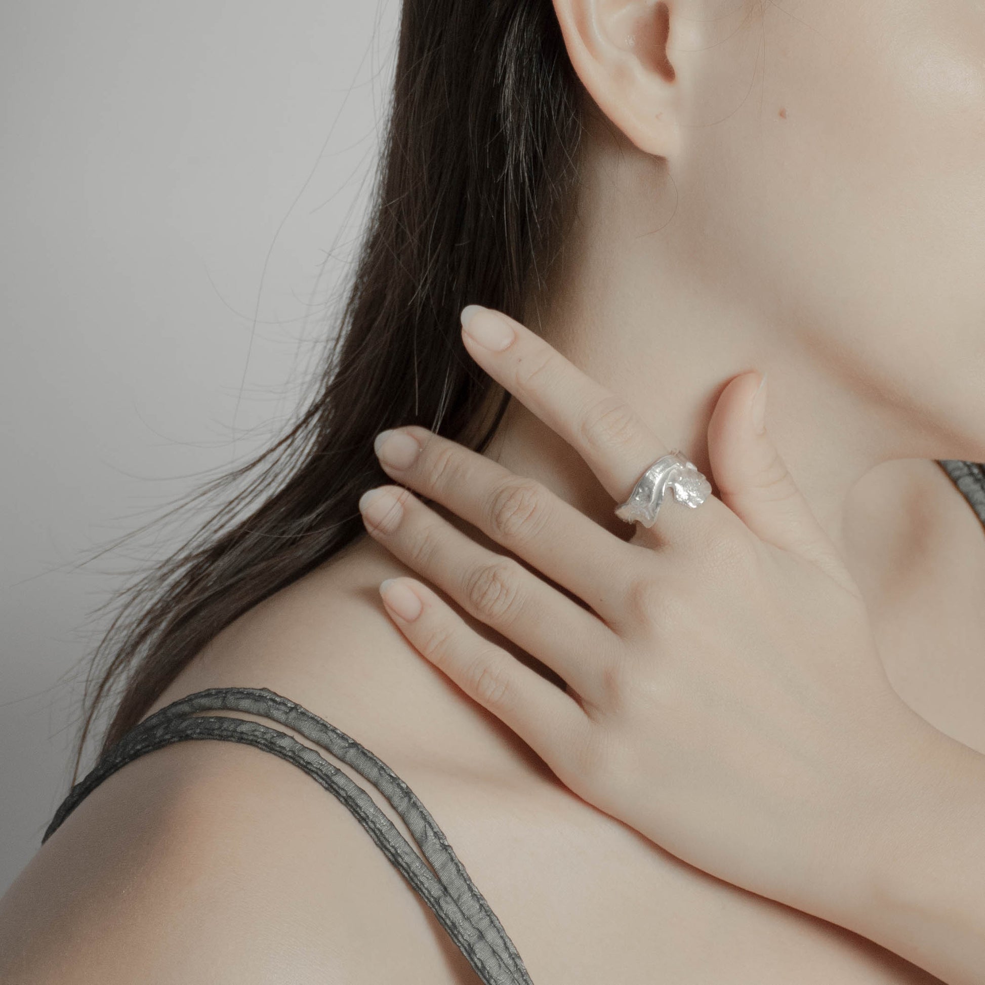 海浪終將回歸大海,浪影或許消逝,但痕跡依然存在。身體是浪潮拍打的岸,飾物則是留下的印記,佩戴於身,成為一種親密的共存,尊敬並珍惜每一個片刻。