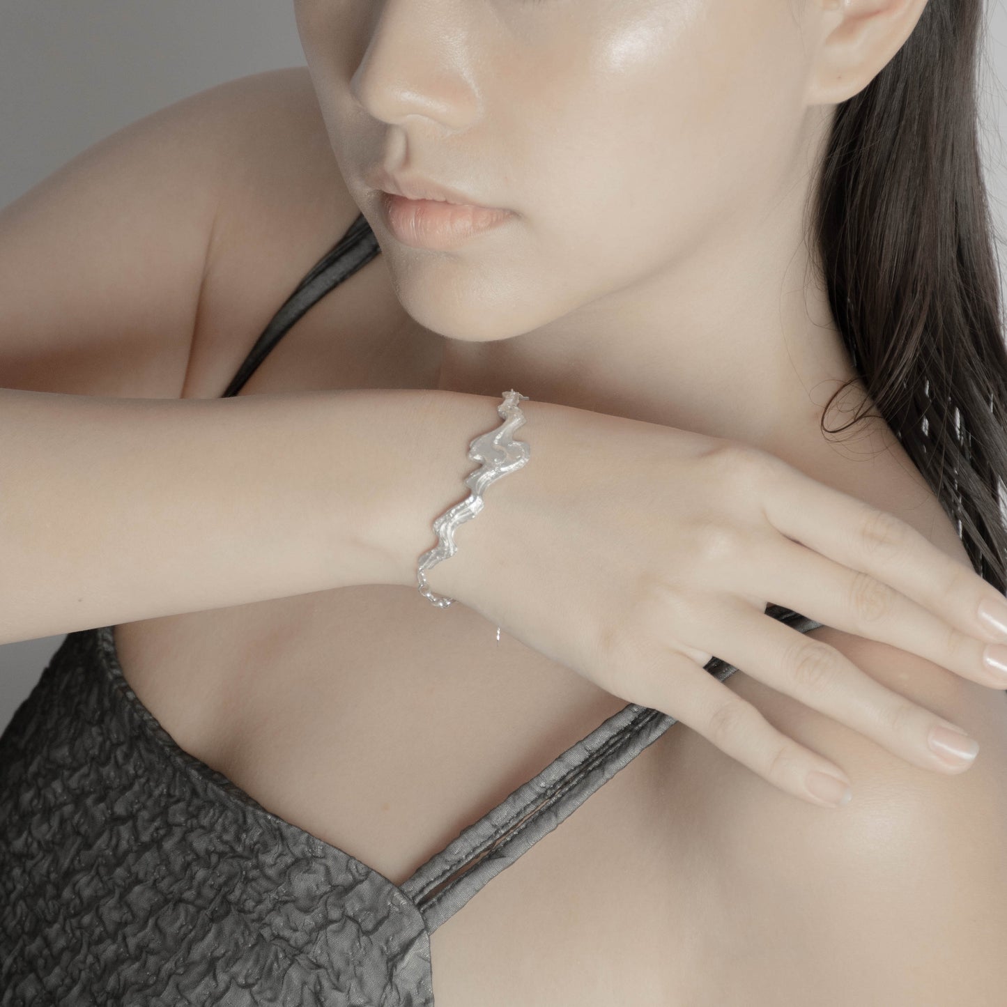 海浪終將回歸大海,浪影或許消逝,但痕跡依然存在。身體是浪潮拍打的岸,飾物則是留下的印記,佩戴於身,成為一種親密的共存,尊敬並珍惜每一個片刻。