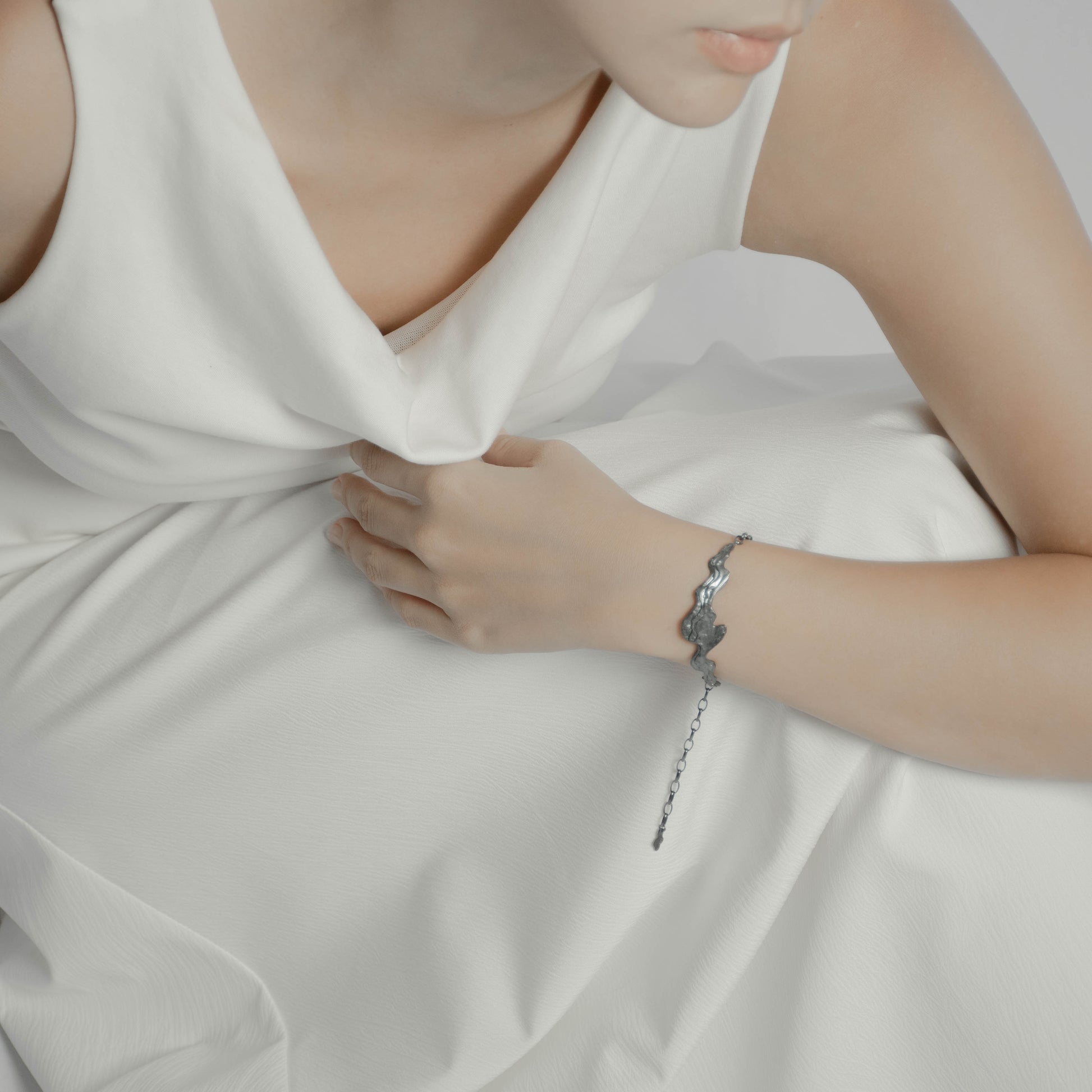 海浪終將回歸大海,浪影或許消逝,但痕跡依然存在。身體是浪潮拍打的岸,飾物則是留下的印記,佩戴於身,成為一種親密的共存,尊敬並珍惜每一個片刻。