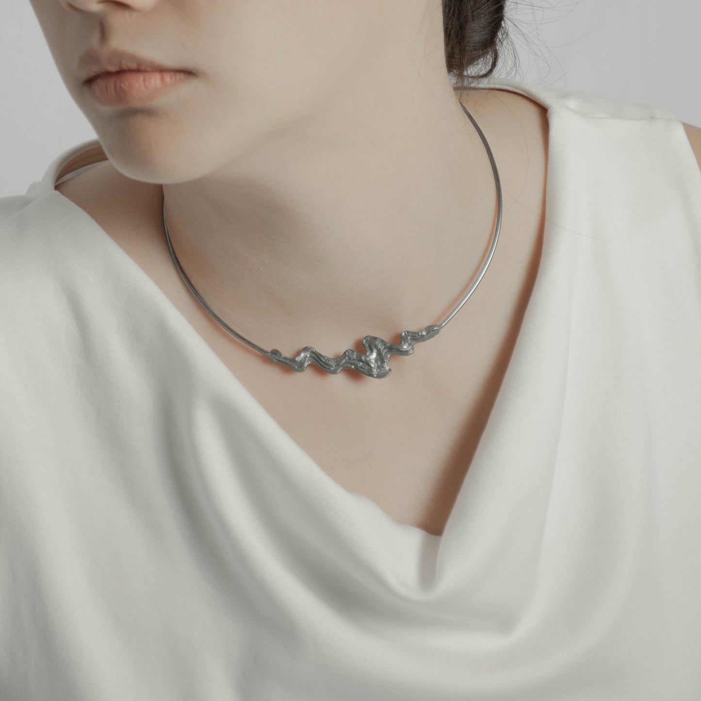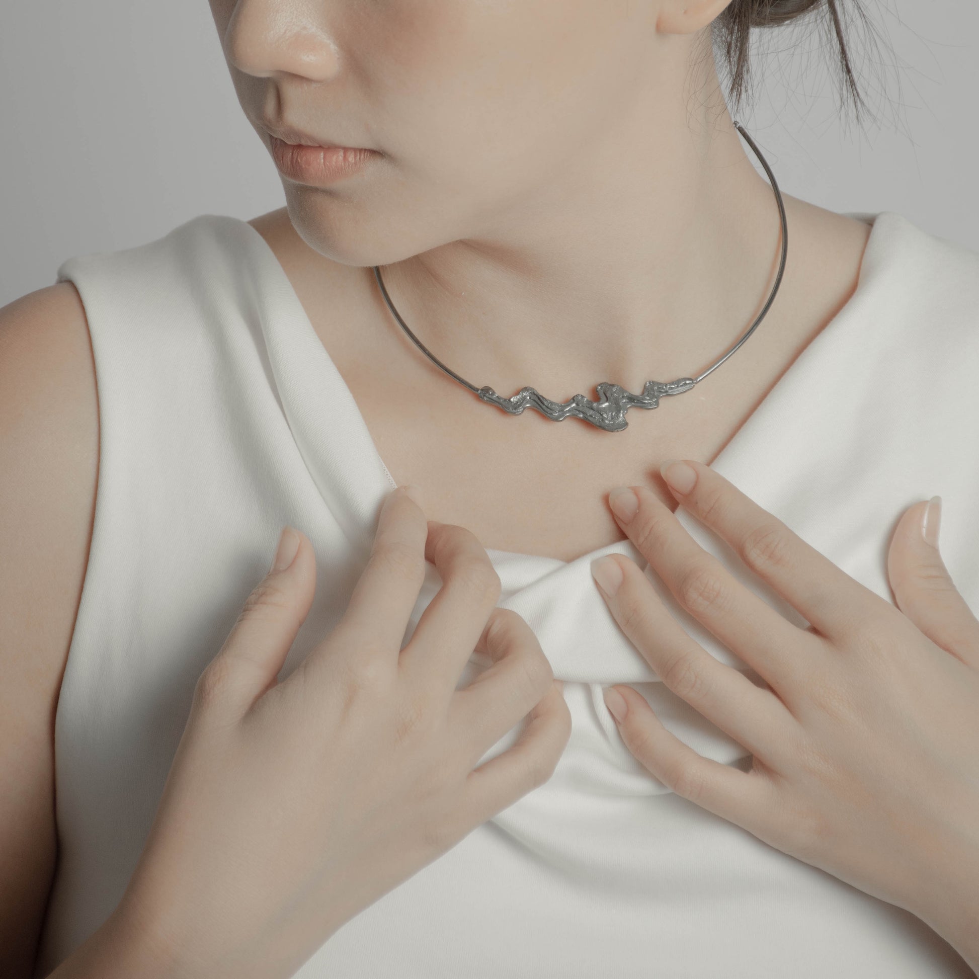 海浪終將回歸大海,浪影或許消逝,但痕跡依然存在。身體是浪潮拍打的岸,飾物則是留下的印記,佩戴於身,成為一種親密的共存,尊敬並珍惜每一個片刻。